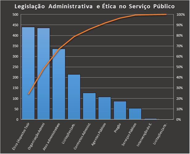 3) Legislação Administrativa e Ética no Serviço Público O caderno base, https://www.tecconcursos.com.br/s/Q2BjsT, contou com 1.805 questões. Usamos como filtro questões da banca QUADRIX. A distribuição é esta: