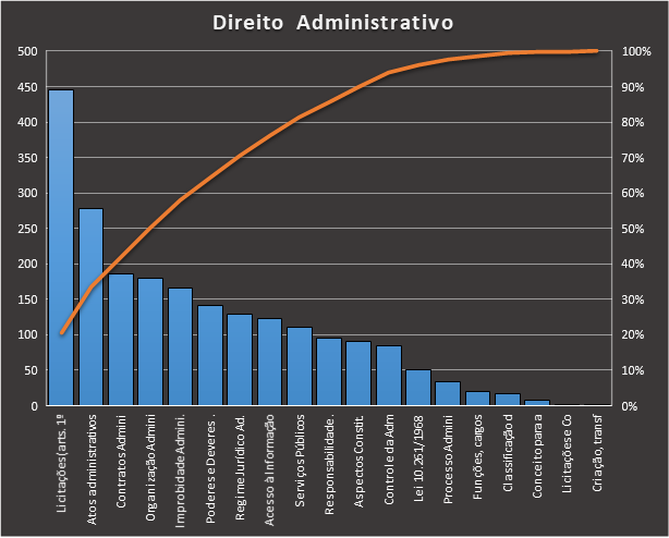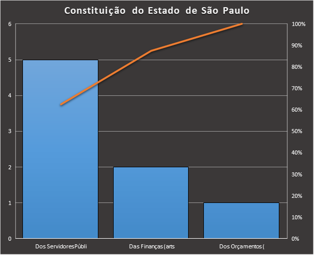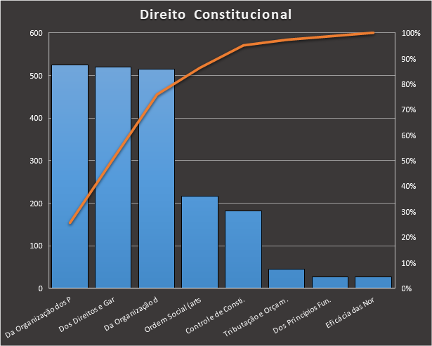 https://www.tecconcursos.com.br/s/Q20xfC, contou com 2.055 questões. Usamos como filtro questões de ensino superior da banca VUNESP. Apenas 3 tópicos somam 76% de todas as questões, são eles: Da organização dos poderes, dos direitos e garantias fundamentais, e da organização do Estado.