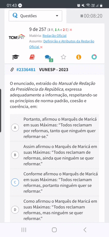 Para quem gosta desta opção (arrastar) não há sentido gastar o escasso espaço em tela com botões ali em cima, pois, afinal, a navegação entre as questões está sempre às mãos.