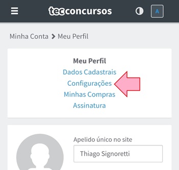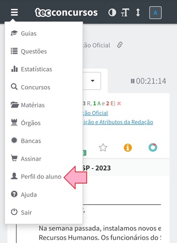 1) Na versão mobile (celular ou tablet) acesse Menu > Perfil do Aluno: