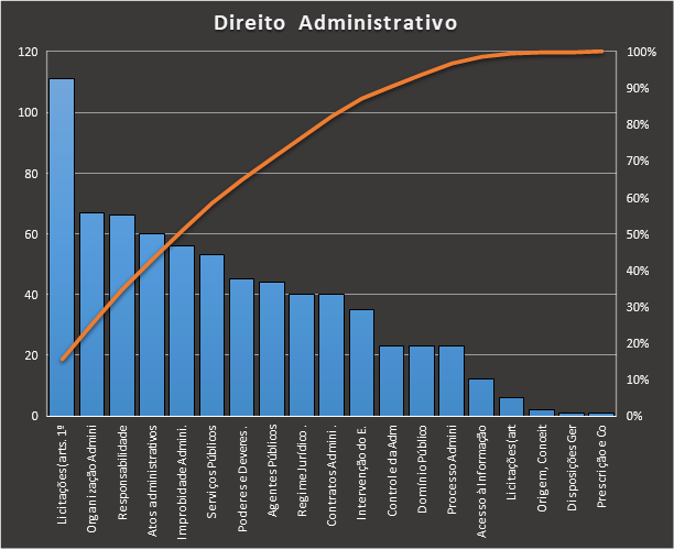 2) Direito Administrativo Em Direito Administrativo, nos baseamos neste caderno: https://www.tecconcursos.com.br/s/Q2Aein, contendo 708 questões. Usamos como filtro questões das áreas jurídica e judiciária da banca FGV. Veja como ficou a distribuição.