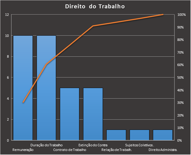 12) Direito do Trabalho Em Direito do Trabalho, nos baseamos neste caderno: https://www.tecconcursos.com.br/s/Q2Aeo6, contendo 33 questões. Usamos como filtro questões das áreas jurídica e judiciária da banca FGV. Veja como ficou a distribuição.