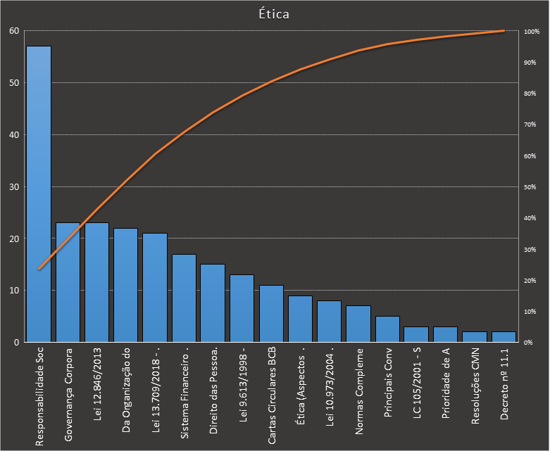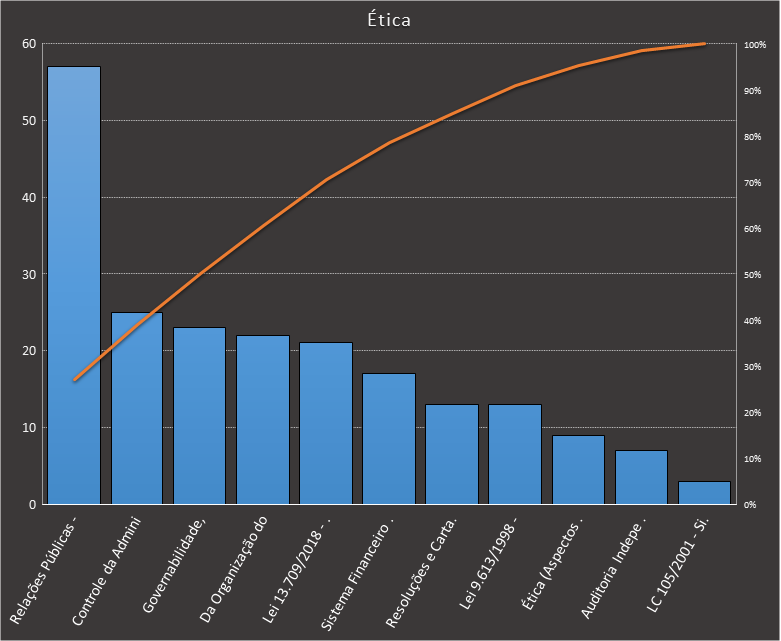 Para Ética, nos baseamos neste caderno, contendo 210 questões. Usamos como filtros questões elaboradas pela CESGRANRIO. Veja o resultado.