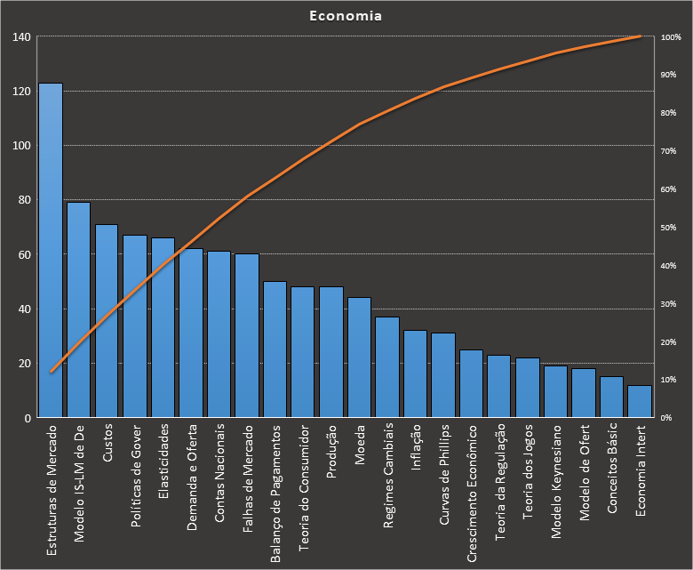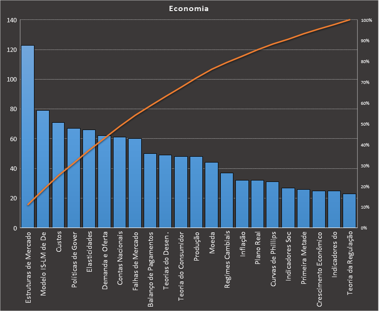 Nós utilizamos o guia acima como base para que, neste atual artigo, realizemos um levantamento dos assuntos mais cobrados e o apresentamos em curvas ABC. O objetivo é auxiliar o aluno a identificar tanto os assuntos mais importantes quanto os assuntos pouco cobrados e até deixados de lado. Este artigo permitirá que o aluno possa organizar seu tempo de estudos de forma desigual para os diferentes tópicos, podendo focar mais tempo nos temas que mais caem, e reservar menos tempo e menos empenho nos assuntos pouco cobrados.