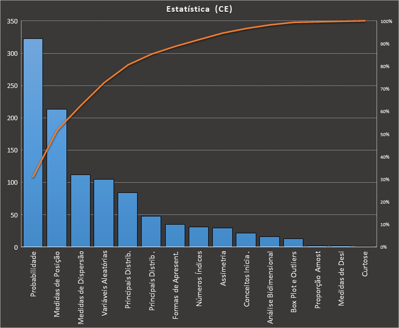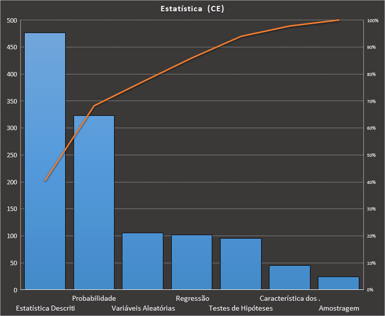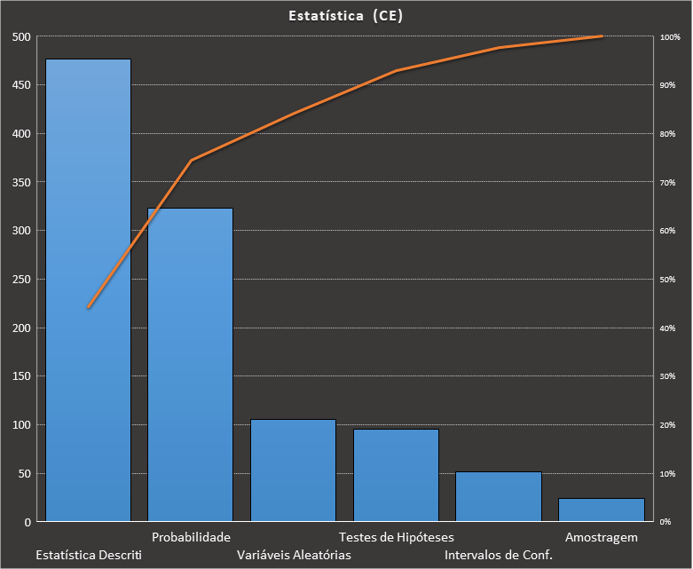 Em Estatística (CE), nos baseamos neste caderno, contendo 1.075 questões. Usamos como filtro questões de concursos elaboradas pela banca CESGRANRIO. Veja como ficou a distribuição.