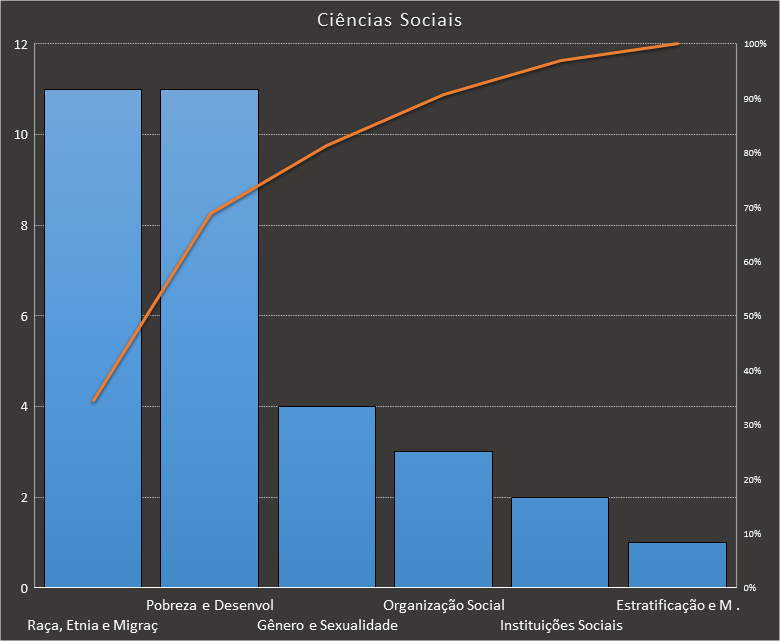 Em Ciências Sociais, nos baseamos neste caderno, contendo 32 questões. Usamos como filtro questões de concursos elaboradas pela banca CESGRANRIO. Veja como ficou a distribuição.
