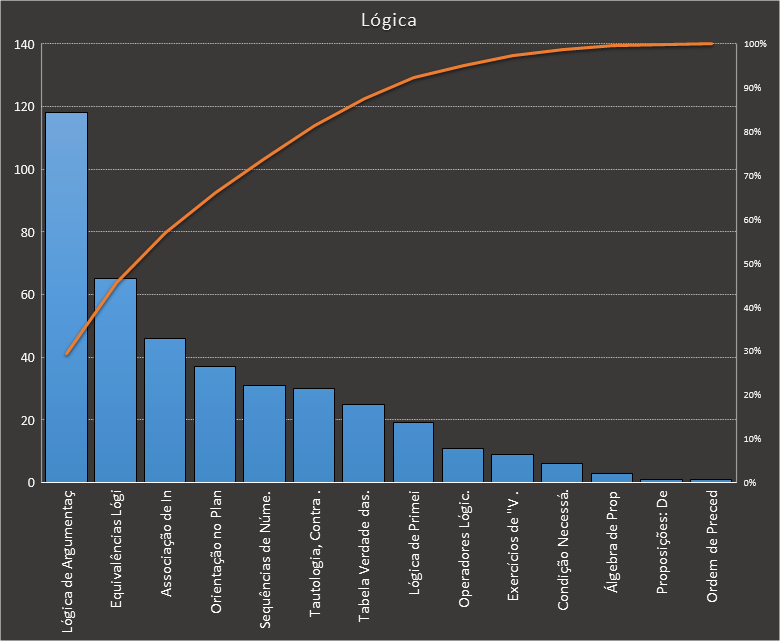 Para Lógica, nos baseamos neste caderno, contendo 402 questões. Usamos como filtro questões de concursos elaboradas pela banca CESGRANRIO. Veja o resultado.