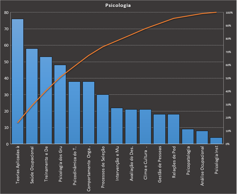 Em Psicologia, nos baseamos neste caderno, contendo 462 questões. Usamos como filtro questões de concursos elaboradas pela banca CESGRANRIO. Veja como ficou a distribuição.
