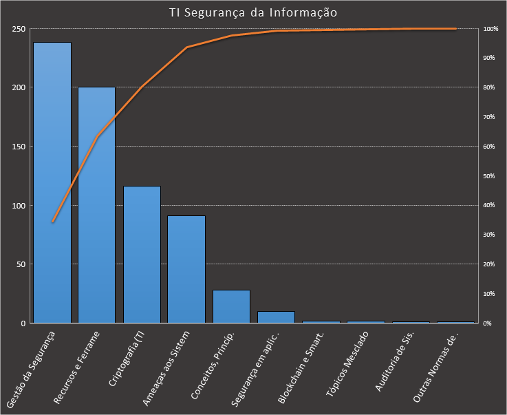 Para TI Segurança da Informação, nos baseamos neste caderno, contendo 689 questões. Usamos como filtro questões da área bancária e financeira. Veja o resultado.