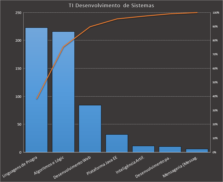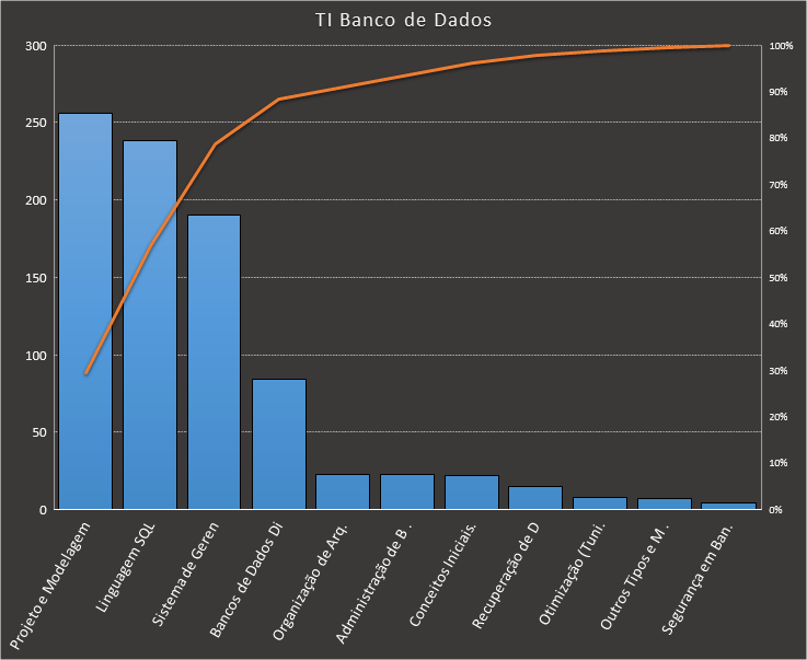 Em TI Banco de Dados, nos baseamos neste caderno, contendo 870 questões. Usamos como filtro questões da área bancária e financeira. Veja como ficou a distribuição.