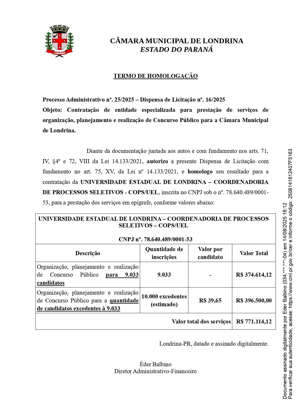 A Universidade Estadual de Londrina - Coordenadoria de Processos Seletivos (COPS/UEL) será responsável pela organização da seleção do próximo Concurso Câmara Londrina PR.