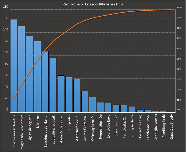 Para esta matéria nos baseamos neste caderno, contendo 142 questões. Usamos como filtro questões de concursos para as forças armadas. Como resultado temos o seguinte.