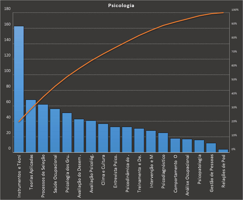 Para Psicologia, nos baseamos neste caderno, contendo 18 questões. Usamos como filtro questões de concursos para as forças armadas. Veja o resultado.