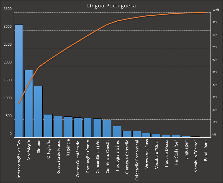 Em Língua Portuguesa, nos baseamos neste caderno, contendo 11.569 questões. Usamos como filtro questões de concursos para as forças armadas. O resultado está na tabela abaixo.