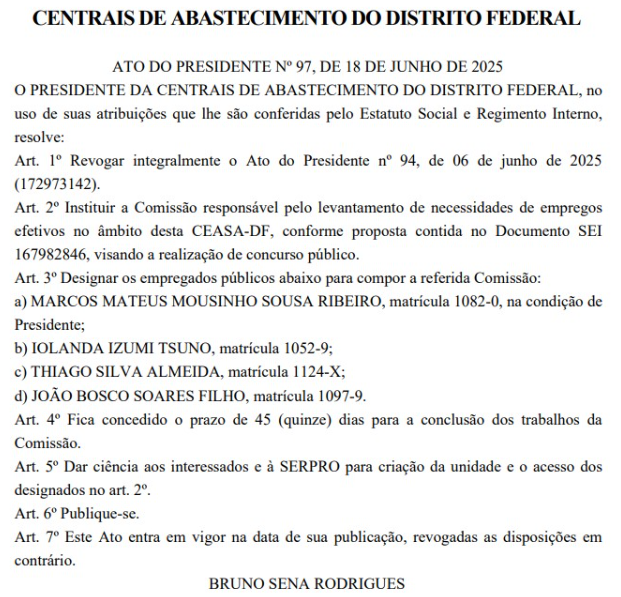 Uma comissão foi formada para um novo concurso Ceasa DF. A última seleção da Centrais de Abastecimento do Distrito Federal ocorreu em 2012 e, na época, houve a oferta de 23 vagas em diversas áreas de nível médio e superior.