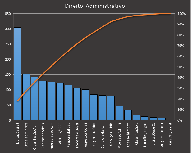 https://www.tecconcursos.com.br/s/Q1vkMZ, contendo 842 questões. Usamos como filtro questões de nível superior da banca FGV. Veja como ficou a distribuição.
