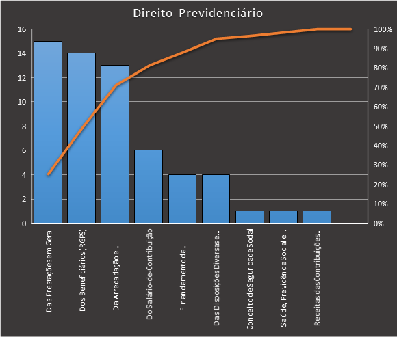 Para Direito Previdenciário, nos baseamos neste caderno: https://www.tecconcursos.com.br/s/Q1Q2lQ, contendo 59 questões. Usamos como filtro questões da banca CESPE para área policial. Veja o resultado.