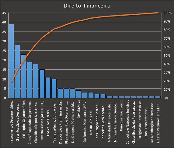 O caderno base, https://www.tecconcursos.com.br/s/Q1Q2l9, contou com 52 questões. Usamos como filtro questões da banca CESPE para área policial. O resultado está apresentado na curva ABC abaixo.