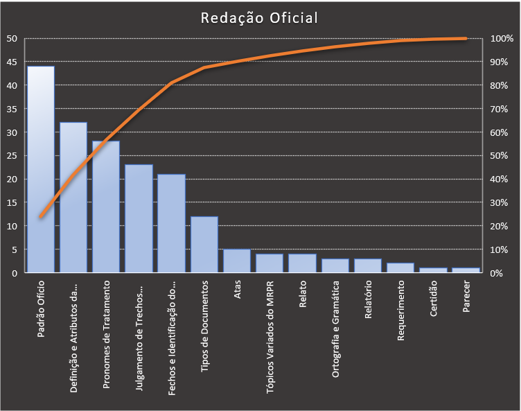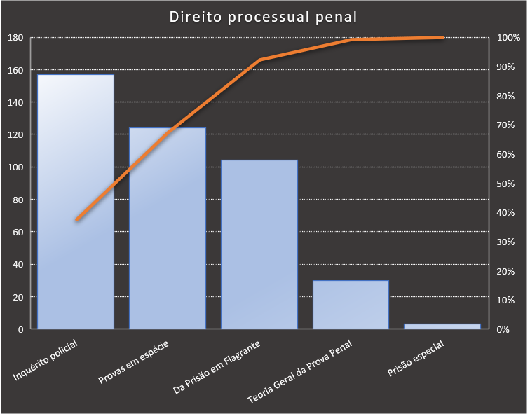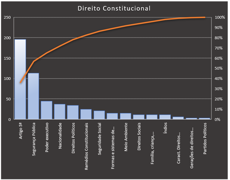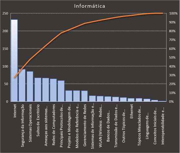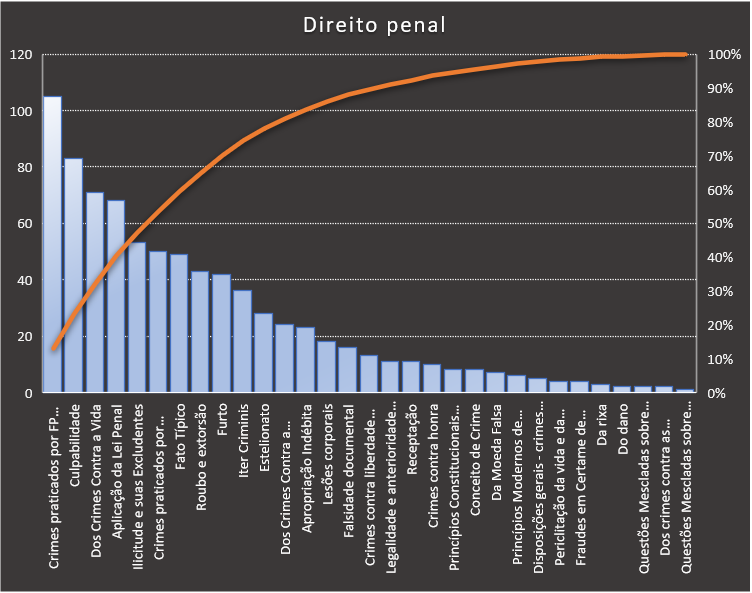 https://www.tecconcursos.com.br/s/Q1Q6sK, contou com 315 questões. Usamos como filtro questões da banca CESPE para área policial. O resultado é apresentado na curva ABC abaixo.