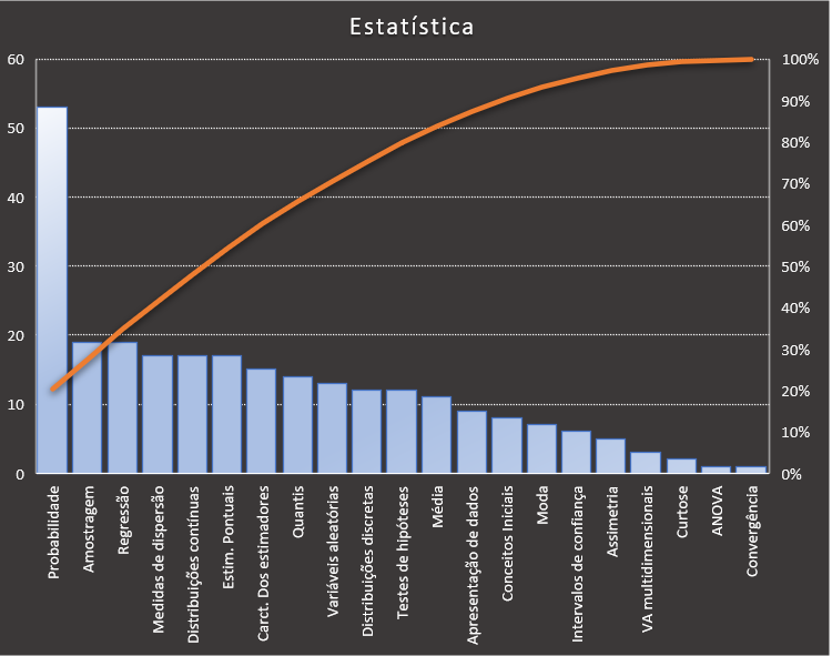 Com base nesse guia de estudos fizemos neste artigo um levantamento dos assuntos mais cobrados e o apresentamos em curvas ABC. O objetivo é auxiliar o aluno a identificar tanto os assuntos mais importantes quanto os assuntos pouco cobrados e até deixados de lado. Este artigo permitirá que o aluno possa organizar seu tempo de estudos de forma desigual para os diferentes tópicos, podendo focar mais tempo nos temas que mais caem, e reservar menos tempo e menos empenho nos assuntos pouco cobrados.
