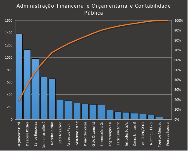 https://www.tecconcursos.com.br/s/Q1s3IU, contendo 7.140 questões. Usamos como filtro questões de nível superior da banca CESPE. Segue a distribuição, com orçamento público correspondendo a praticamente um quinto das questões.
