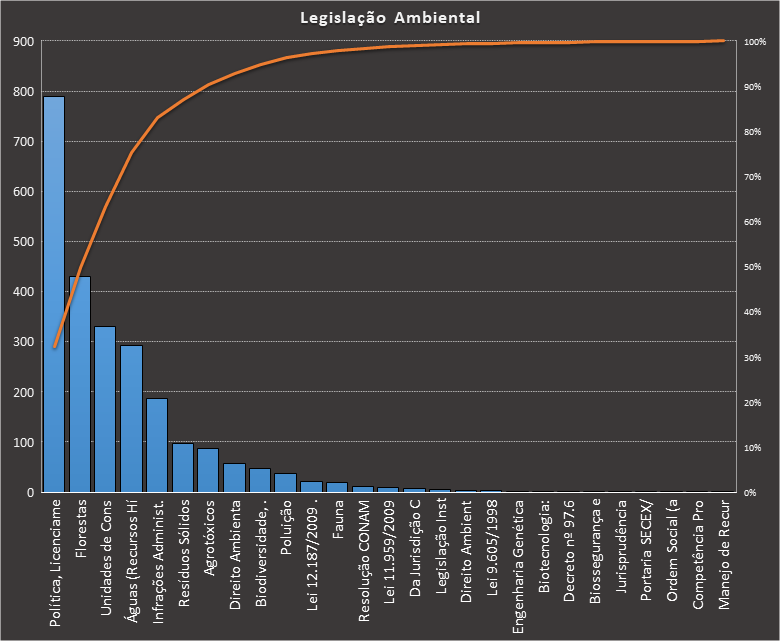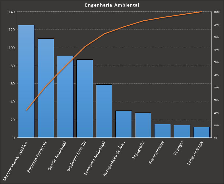 Em Engenharia Ambiental, nos baseamos neste caderno, contendo 571 questões. Usamos como filtros questões elaboradas pela banca CEBRASPE. Veja como ficou a distribuição.