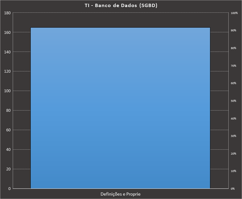 Em TI - Banco de Dados (SGBD), nos baseamos neste caderno, contendo 165 questões. Usamos como filtros questões elaboradas pela banca CEBRASPE. Veja como ficou a distribuição.
