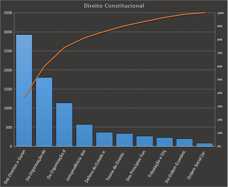 O caderno base contou com 269 questões. Usamos como filtros questões elaboradas pela banca CEBRASPE. A distribuição é esta: