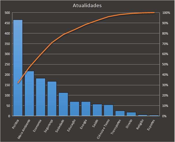 Destacados de azul nessa tabela estão 6 tópicos cuja probabilidade acumulada é de 71%. Isso significa que apenas 6 tópicos cobrem 71% de todas as questões da matéria que obedecem aos filtros utilizados, como mostra a distribuição abaixo.