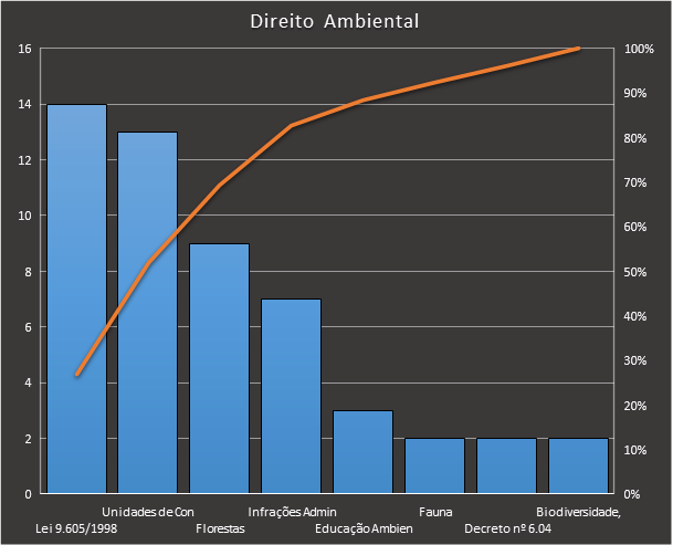 Idealmente um quesito adicional seria filtrar por questões da área ambiental, mas essa análise não é possível, pois adicionar esse filtro não resultaria, para muitas matérias, em quantidade suficiente de questões que permitam analisar os assuntos que a banca prefere cobrar.