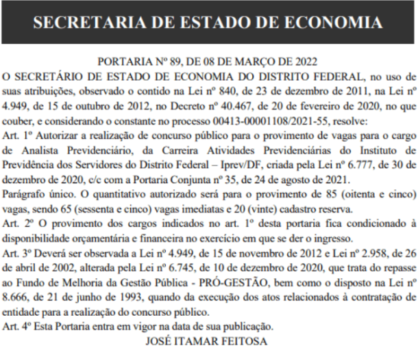 Edital do IPREV DF de 2022 |
