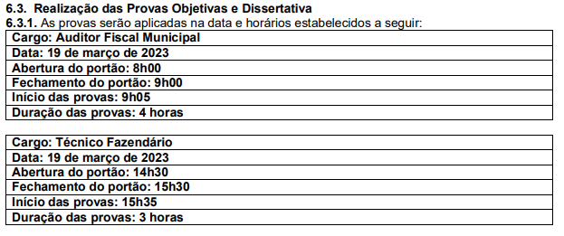 Por fim, fique de olho nas datas! A aplicação das provas objetiva e dissertiva está prevista para o dia 19 março de 2023. A aplicação acontecerá da seguinte forma: