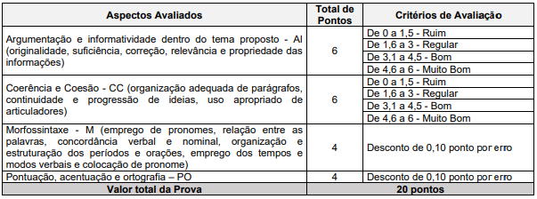 atualidade. A redação deverá ter mínimo de 20 linhas e o máximo de 30 linhas. Veja na imagem abaixo quais os aspectos serão analisados: