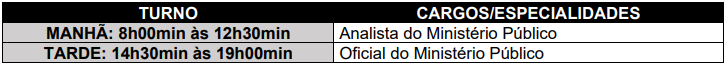 Por fim, fique de olho nas datas! A aplicação da prova objetiva está prevista para o dia 15 de janeiro de 2023, as provas serão aplicadas nas cidades de Belo Horizonte, Governador Valadares, Juiz de Fora, Montes Claros, Pouso Alegre e Uberlândia. Veja os turnos das aplicações: