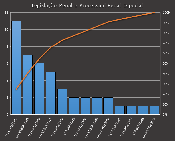 Aqui não utilizados filtros de banca e nível de ensino como nas demais matérias, mas sim foi utilizado exatamente o caderno do Guia de Estudos do TEC, por ter sido elaborado por professores do TEC com questões inéditas e adaptadas, um projeto que visa facilitar a compreensão e absorção da matéria para normas em que existem poucas questões. Veja como ficou a distribuição.