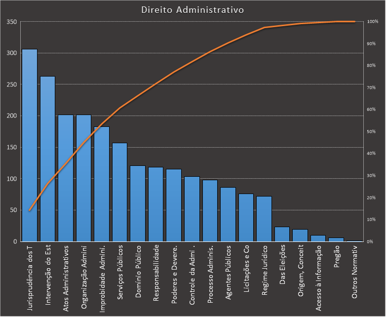 Para esta matéria nos baseamos neste caderno, contendo 345 questões. Usamos como filtro questões elaboradas pela banca CEBRASPE em concursos para autoridades da área jurídica. Como resultado temos o seguinte.