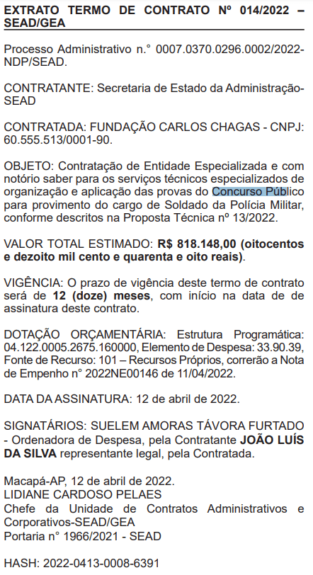 Último edital do concurso da PM AP