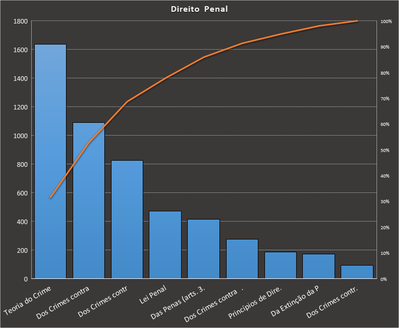 Para Direito Penal, nos baseamos neste caderno, contendo 5.170 questões. Usamos como filtros questões de concursos das forças armadas e da área policial. Veja o resultado.