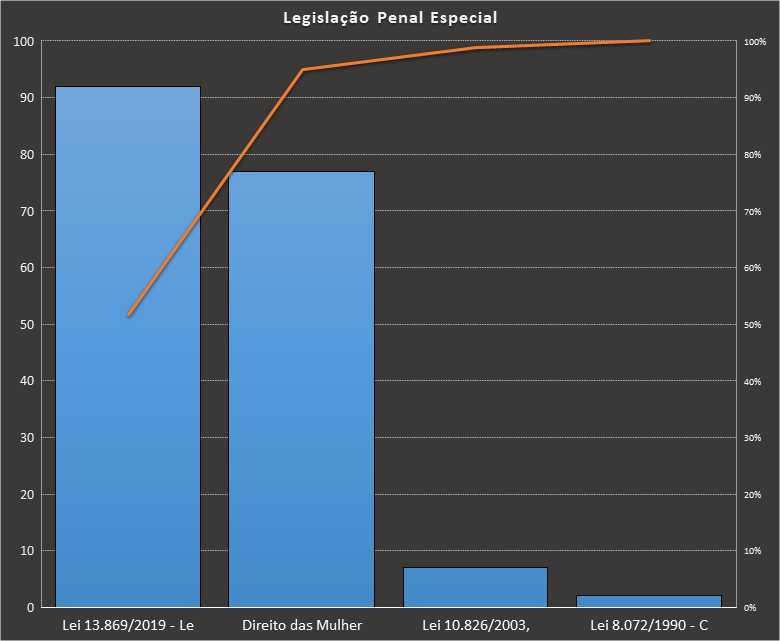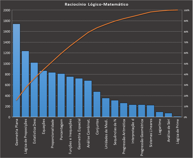Para esta matéria nos baseamos neste caderno, contendo 537 questões. Usamos como filtros questões de concursos das forças armadas e da área policial. Como resultado temos o seguinte.