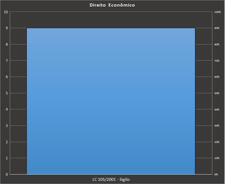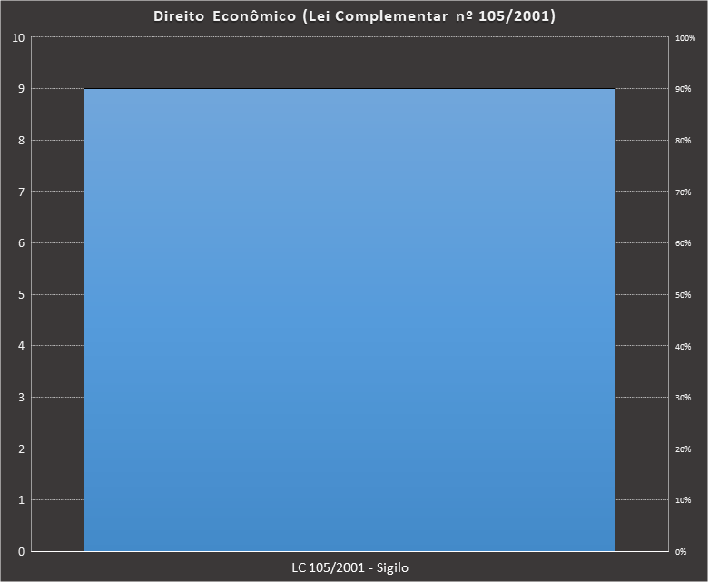 Em Direito Econômico (Lei Complementar nº 105/2001), nos baseamos neste caderno, contendo 9 questões. Usamos como filtros questões elaboradas pela FCC. Veja como ficou a distribuição.