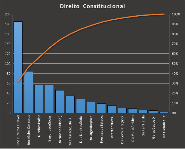 Com base nesse guia de estudos fizemos neste artigo um levantamento dos assuntos mais cobrados e o apresentamos em curvas ABC. O objetivo é auxiliar o aluno a identificar tanto os assuntos mais importantes quanto os assuntos pouco cobrados e até deixados de lado. Este artigo permitirá que o aluno possa organizar seu tempo de estudos de forma desigual para os diferentes tópicos, podendo focar mais tempo nos temas que mais caem, e reservar menos tempo e menos empenho nos assuntos pouco cobrados.