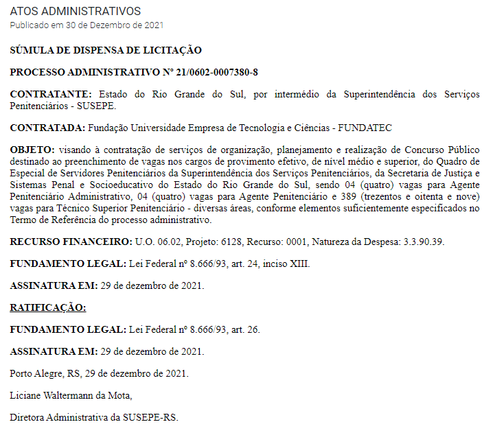 próximas etapas do concurso Susepe foi publicado no site da banca organizadora, a Fundatec.