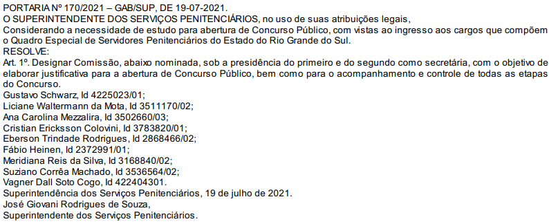 O último edital da Superintendência dos Serviços Penitenciários do Rio Grande do Sul foi publicado em 2017.