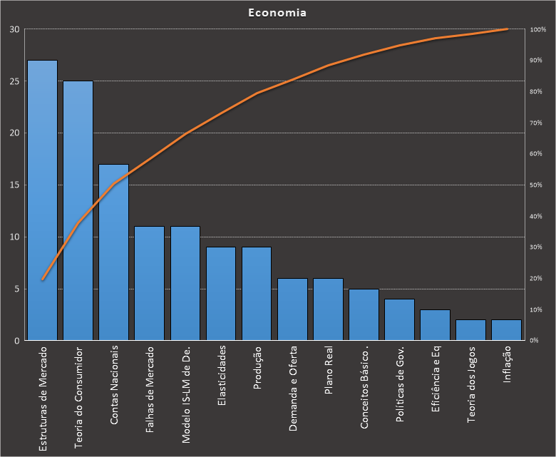 Nós utilizamos o guia acima como base para que, neste atual artigo, realizemos um levantamento dos assuntos mais cobrados e o apresentamos em curvas ABC. O objetivo é auxiliar o aluno a identificar tanto os assuntos mais importantes quanto os assuntos pouco cobrados e até deixados de lado. Este artigo permitirá que o aluno possa organizar seu tempo de estudos de forma desigual para os diferentes tópicos, podendo focar mais tempo nos temas que mais caem, e reservar menos tempo e menos empenho nos assuntos pouco cobrados.