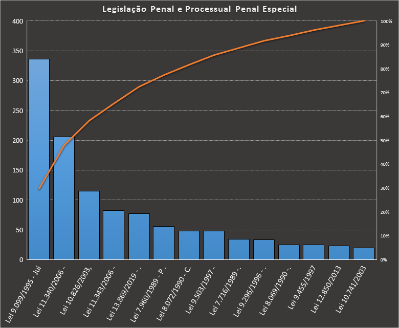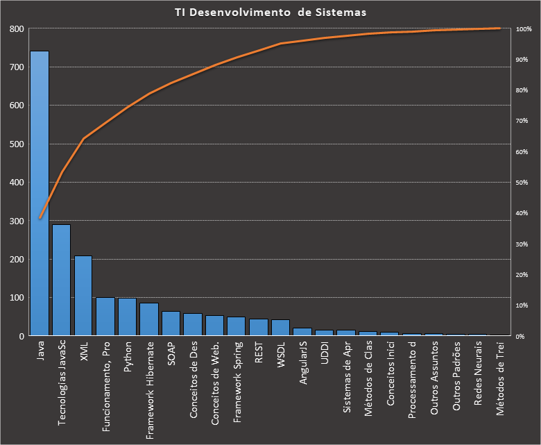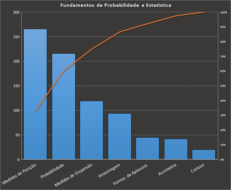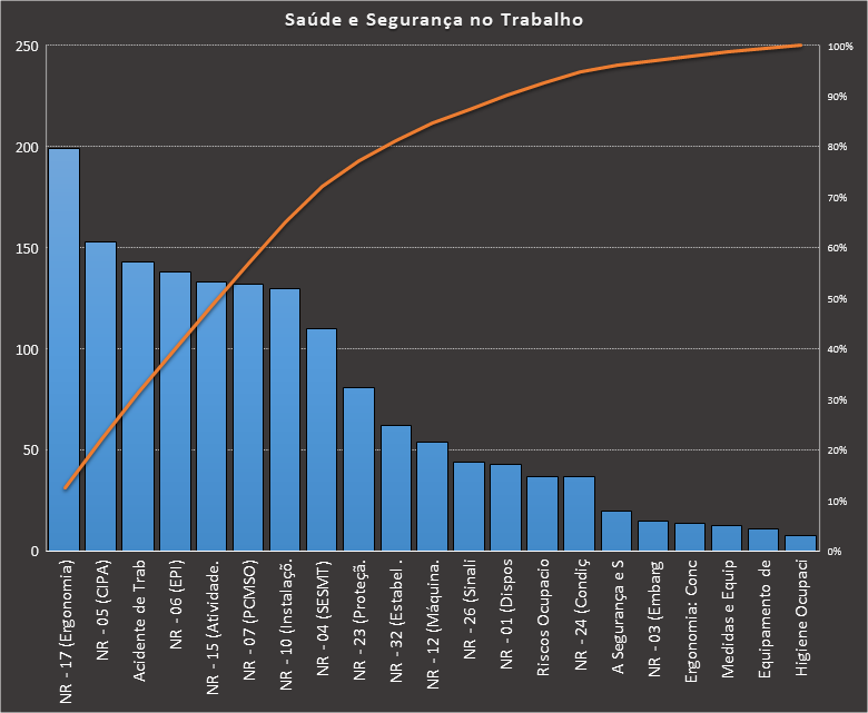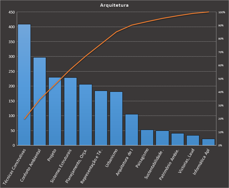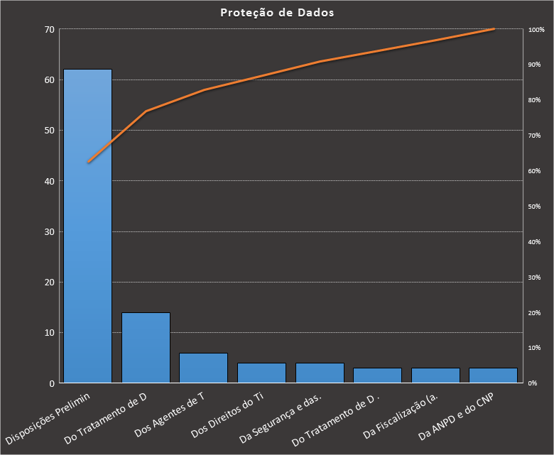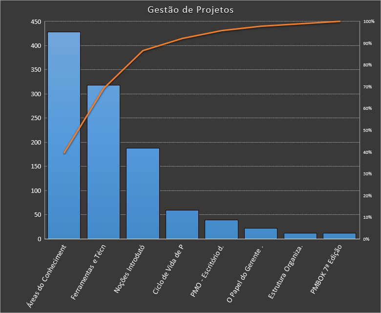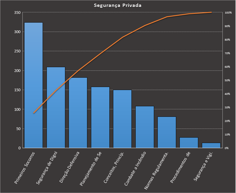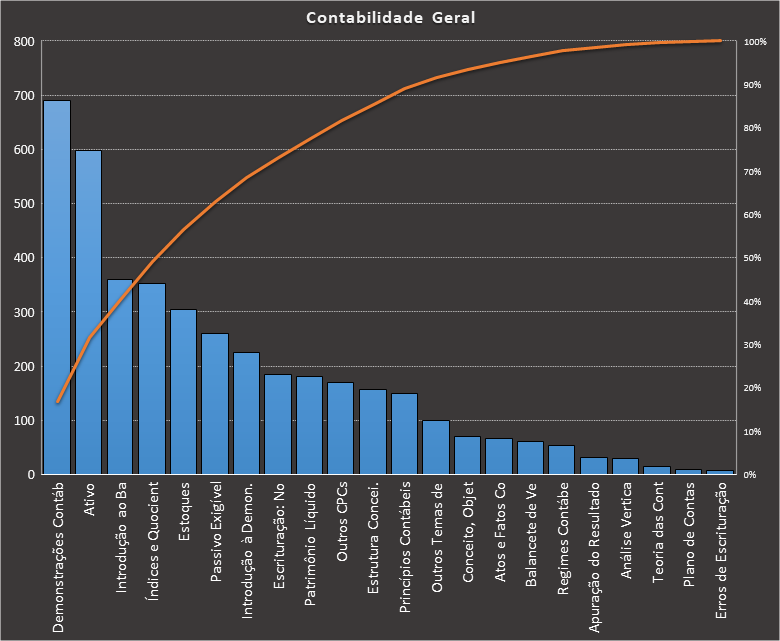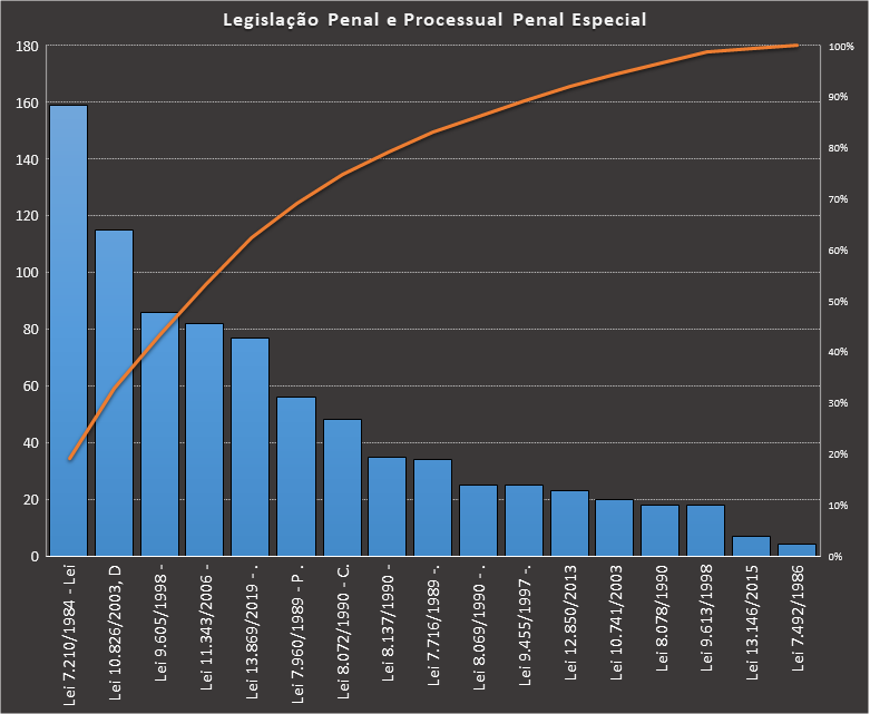Em todas as tabelas deste artigo destacamos de cor azul os assuntos que atingem porcentagem acumulada de 70%. Para esta matéria em específico, temos destacados de azul 7 tópicos cuja porcentagem acumulada é de extamente 70%. Isso significa que 7 assuntos cobrem 70% de todas as questões da matéria que obedecem aos filtros utilizados. Segue a distribuição.