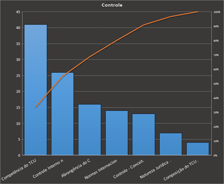 Normas Internacionais sobre Controle Interno (COSO, Intosai) | 14 | 5% | 89% |