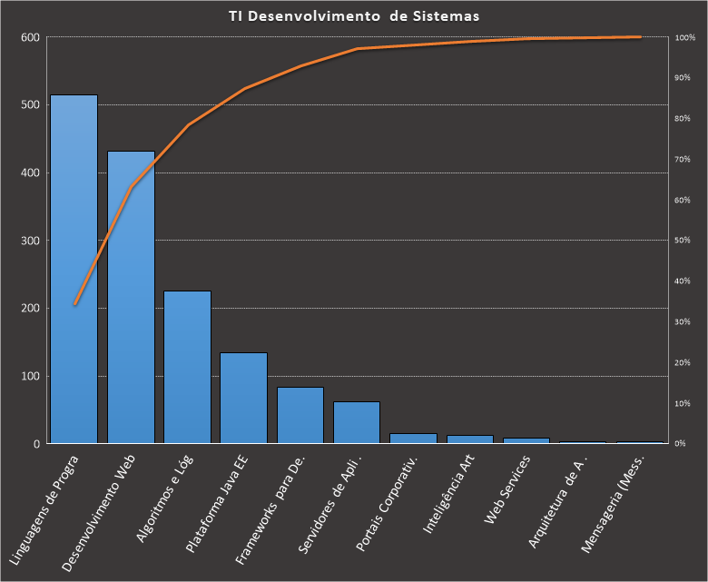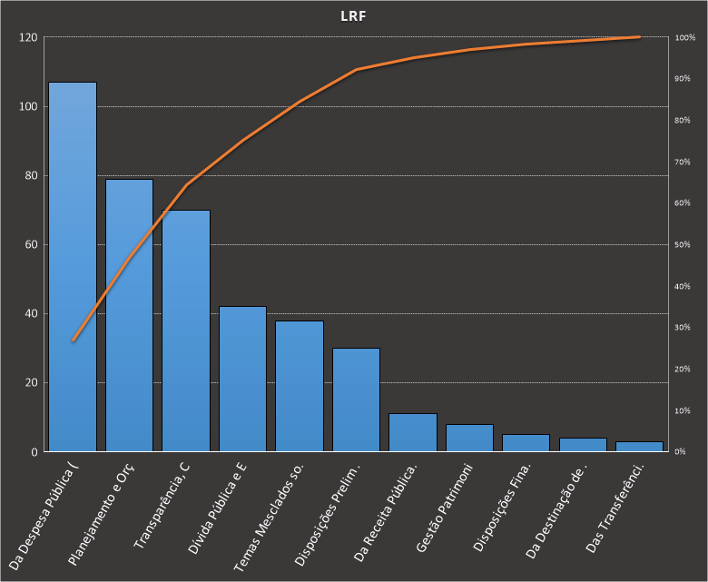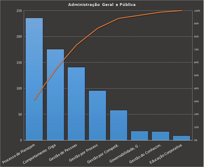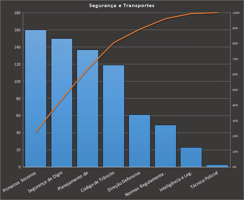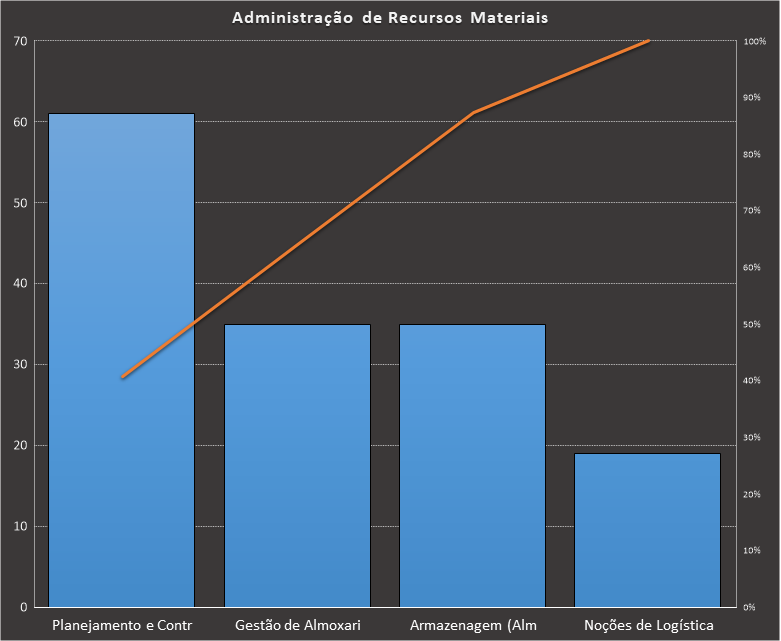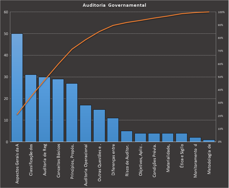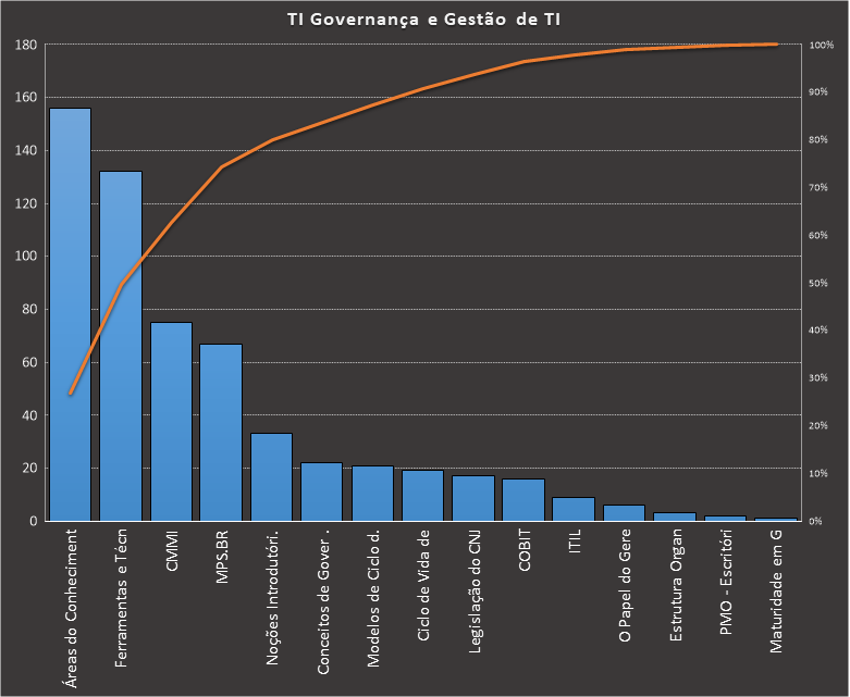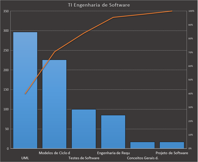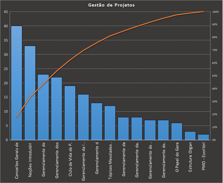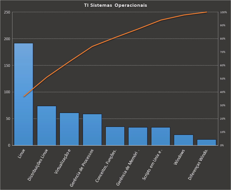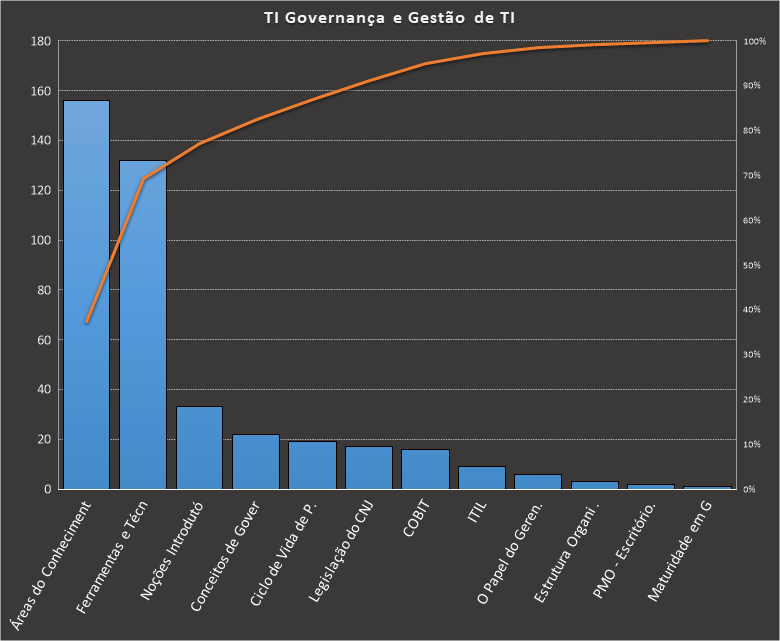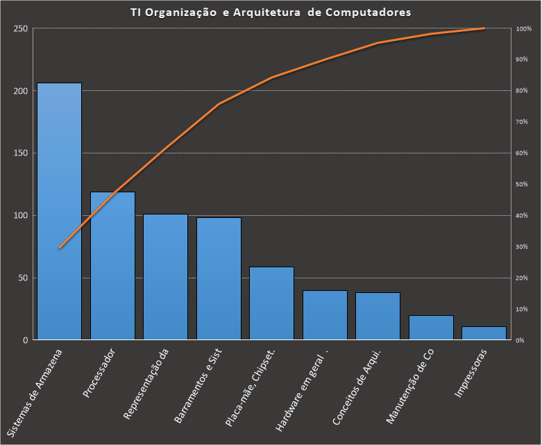 Para esta matéria em específico, temos destacados de azul 5 tópicos cuja porcentagem acumulada é de 74%. Isso significa que apenas 5 assuntos cobrem 74% de todas as questões da matéria que obedecem aos filtros utilizados.