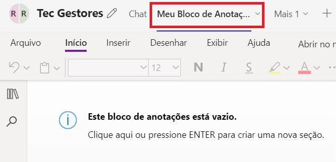 A ideia aqui é similar ao recurso de Arquivos. Se há aplicativos que são úteis na rotina da equipe é interessante tê-los sempre à mão. Você pode afixar aplicativos na barra lateral esquerda do Teams, bem como colocá-los como guias em Canais e Chats. Veja o exemplo abaixo, em que eu coloquei o aplicativo do One Note em uma guia de um chat em grupo.