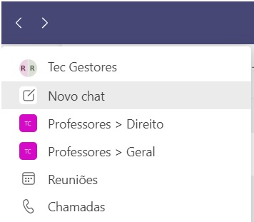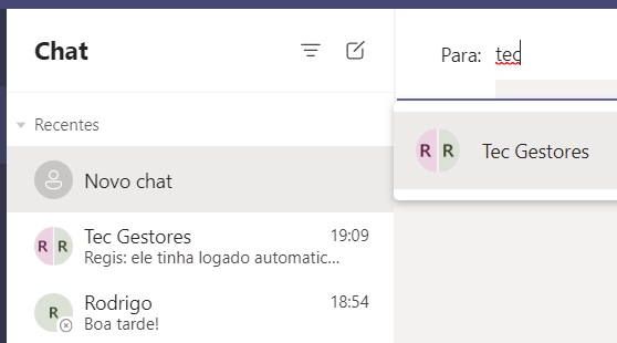1. Clicar em Chats \to Novo Chat e Selecionar o nome das pessoas ou grupos.