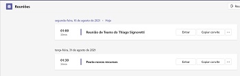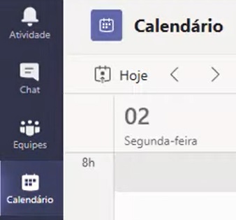 Antes de explicarmos esse recurso é interessante notar que na versão gratuita de trabalho do MS Teams o recurso se chama Reuniões. Já na versão paga esta guia se chama Calendário.